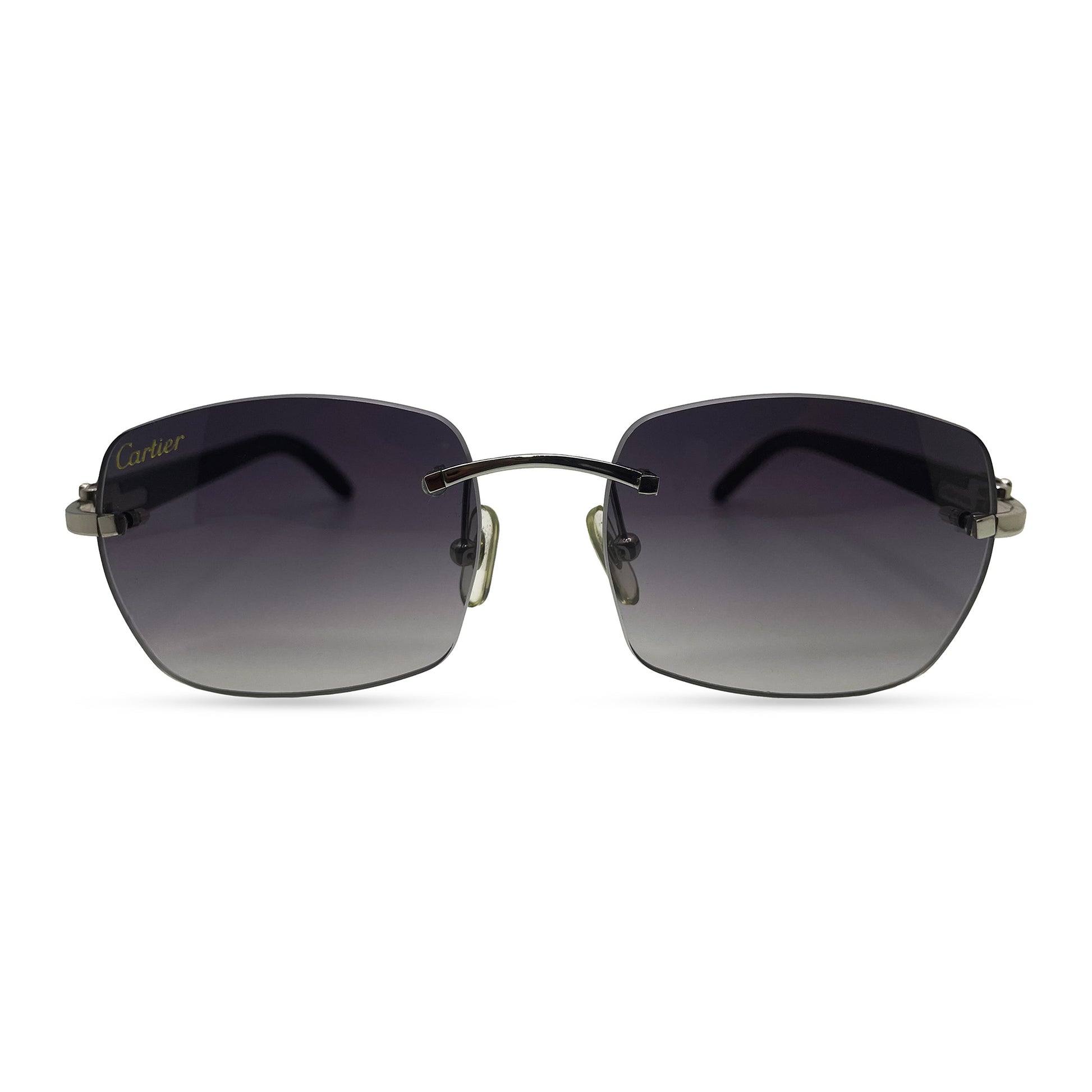 This rimless C Decor sunglasses comes with a silver rimless frame, black genuine horn temples (all black or with swirls**) and a variety of lenses shapes and colors.