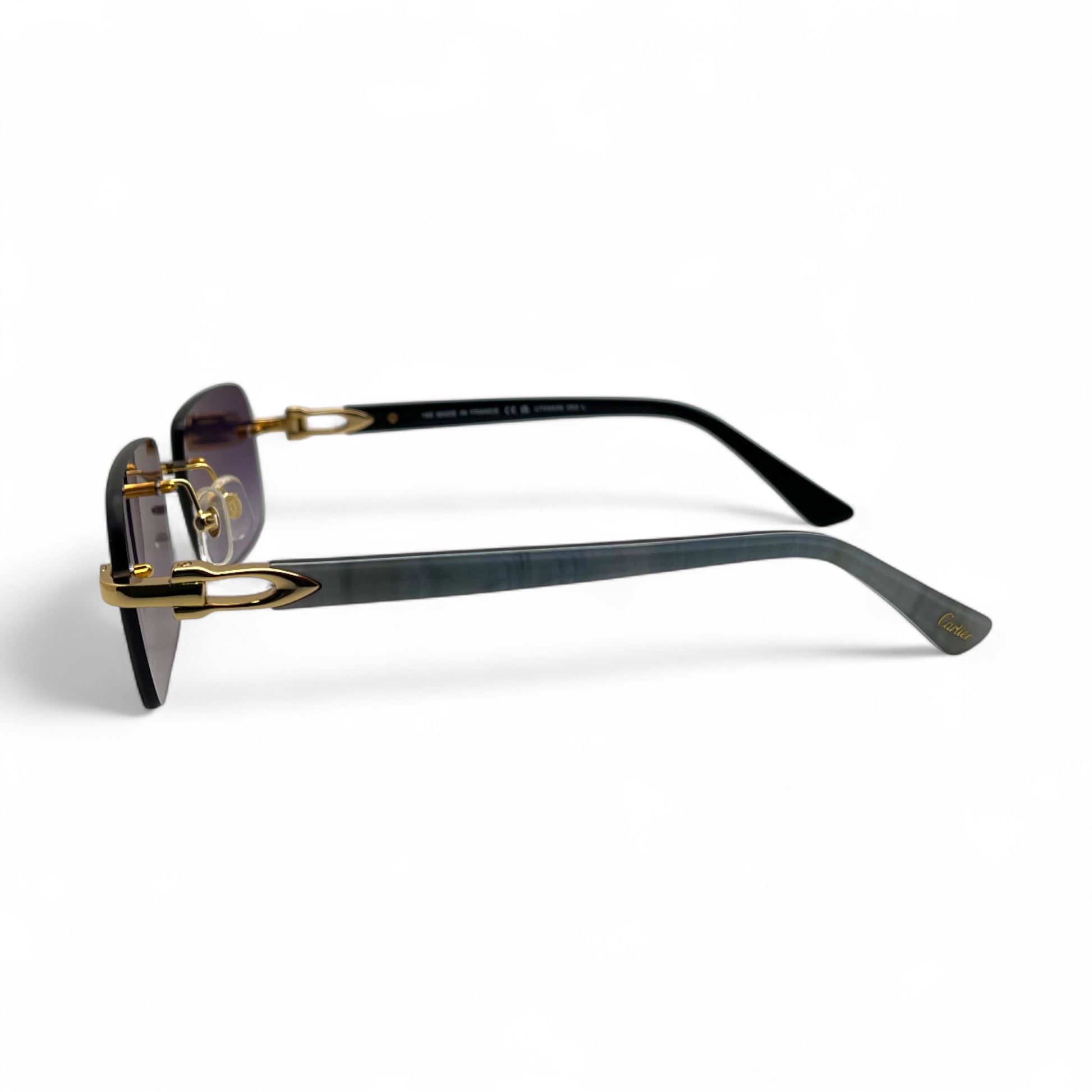 The Cartier CT0453O, a piece from the prestigious Signature C - C Decor collection. This refined eyewear showcases a contemporary rimless rectangular silhouette, elevated by luxurious composite temples and the iconic C Decor hinge mechanism.