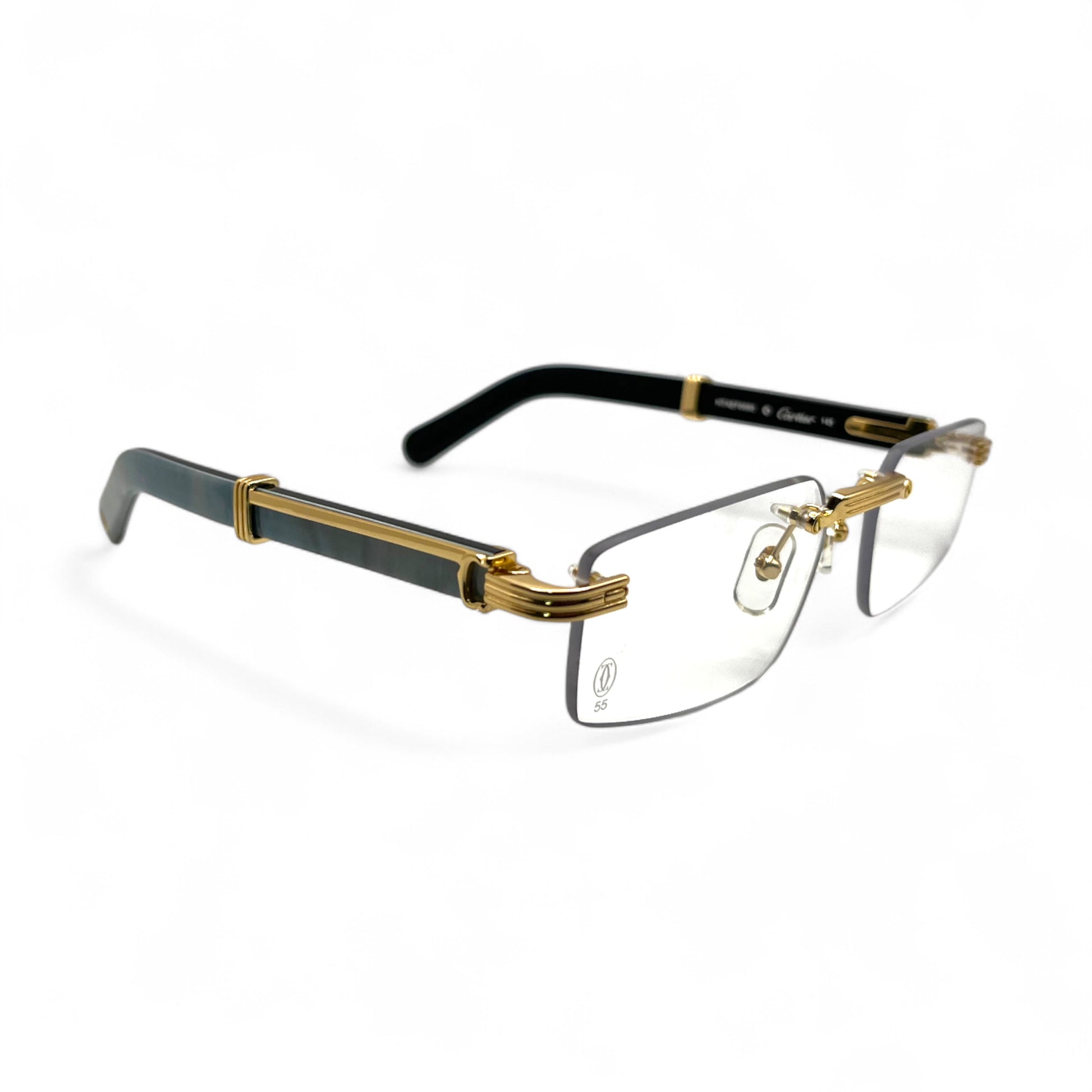 The CT0485O Premiere, a new addition to the luxurious Premiere line. It exemplifies luxury eyewear craftsmanship with its distinctive geometric rectangular silhouette. These rimless frames eliminate traditional lens borders while incorporating premium materials complemented by buffalo horn temple pieces.